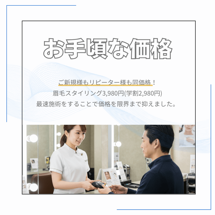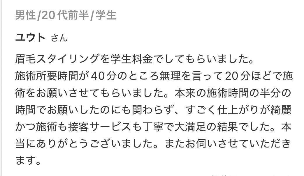 1ヶ月に1度の頻度でご来店されるお客様が多いです。眉の生えるスピードは人によって異なりますので、気になりだしたらいつでもご来店ください!