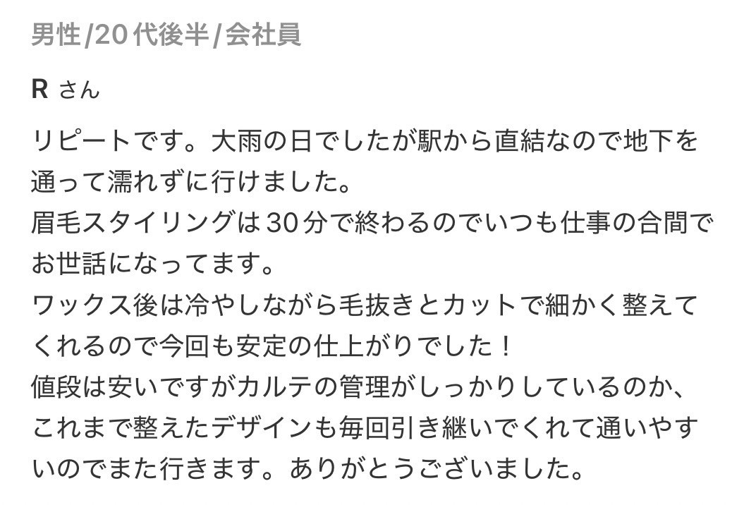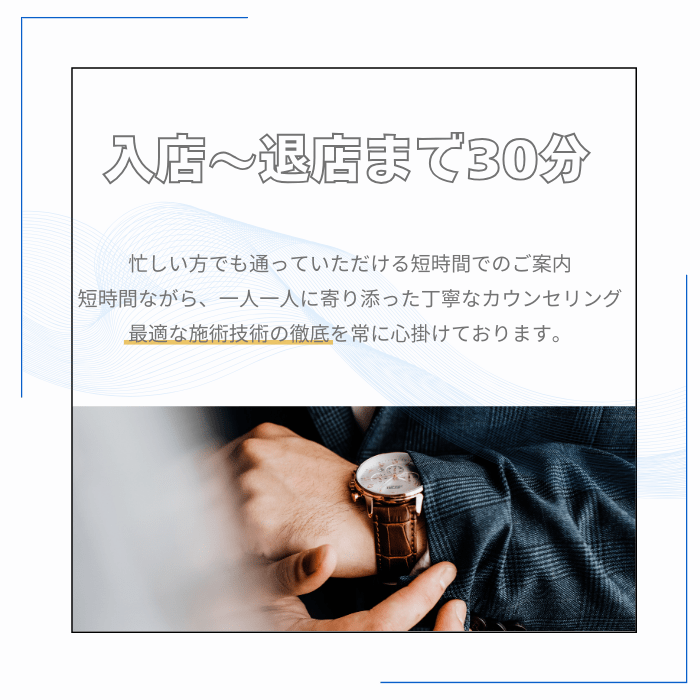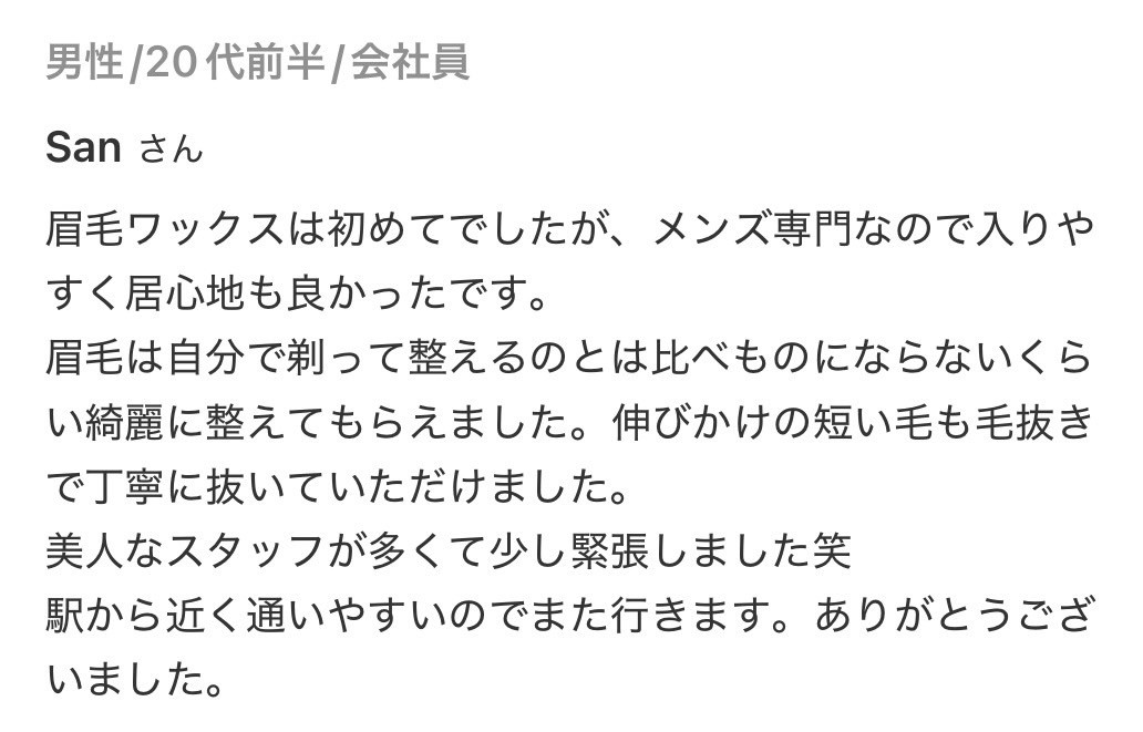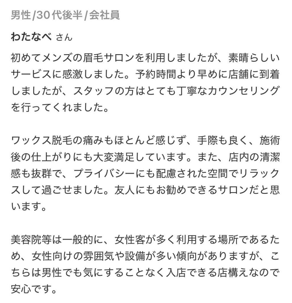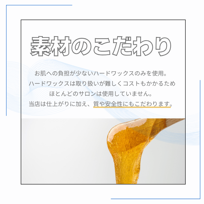 できれば2週間以上伸ばしてきてください。短い毛はワックスで抜けにくいため毛抜きの作業が多くなるか、毛抜きでも抜けないものは黒く残ってしまいますので伸ばしてきてくださったほうが綺麗に仕上がります。