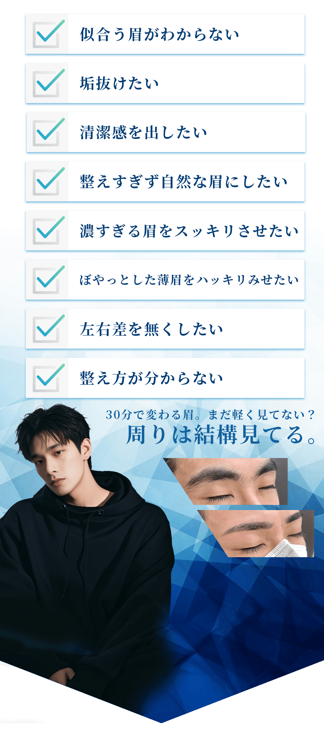 毛の生えるスピードには個人差がございますが、2~3週間は整った状態が続きます。